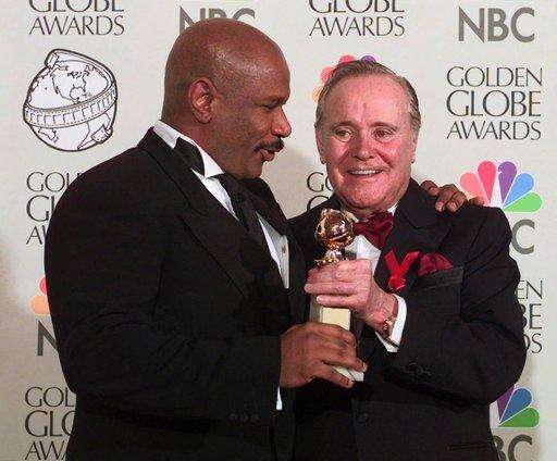 FILE - In this Jan. 18, 1998 file photo, Ving Rhames shares his Best Actor in a miniseries or movie made for television with Jack Lemmon at the 55th Annual Golden Globe Awards in Beverly Hills, Calif. Veteran Golden Globes producer Barry Adelman is sharing some of his favorite Golden Globes memories as the show celebrates its 75th anniversary on Sunday, Jan. 7, 2018. His memories include Rhames unexpectedly giving his Golden Globe to Jack Lemmon in an emotional moment. (AP Photo/Mark J. Terrill, File) The Associated Press