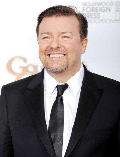 FILE - In this Jan. 11, 2009 file photo, Ricky Gervais poses for a photo backstage at the 66th Annual Golden Globe Awards in Beverly Hills, Calif. Veteran Golden Globes producer Barry Adelman is sharing some of his favorite Golden Globes memories, including hosting appearances by Gervais, Tina Fey and Amy Poehler, as the show celebrates its 75th anniversary on Sunday, Jan. 7, 2018. (AP Photo/Mark J.Terrill, file) The Associated Press