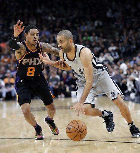 Suns: F T.J. Warren did not play after being listed as questionable due to an illness. . Phoenix was also without F Jared Dudley (illness). . The Suns have made a 3-pointer in 1,099 consecutive games since March 29, 2004. It's the second-longest streak in NBA history to Dallas' 1,108 straight from Feb. 27, 1999, to Dec. 12, 2012. . The Spurs have won 12 of the last 13 in the series. Phoenix's last win in San Antonio was Feb. 27, 2013. Jermaine O'Neal had 22 points in the 105-101 victory.