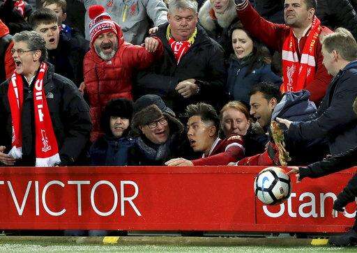LIVERPOOL, England (AP) - Liverpool says the club will co-operate with soccer authorities following a confrontation between striker Roberto Firmino and Everton opponent Mason Holgate during the Merseyside derby match on Friday.