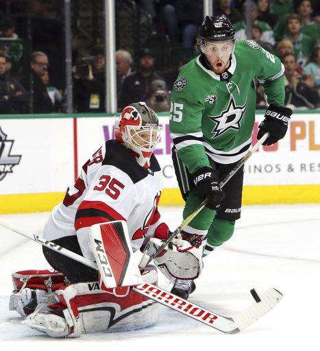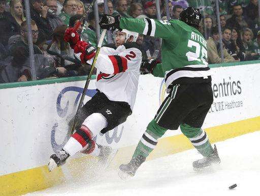 NOTES: Three Dallas-area natives have played in the past two games against the Stars. Seth Jones, son of former Dallas Mavericks player Popeye Jones, had an assist in the Blue Jackets' 2-1 win. Plano natives Blake Coleman and Stefan Noesen are forwards for the Devils. ... Stars D Marc Methot had two shots and three hits in 16 minutes after missing 26 games following arthroscopic knee surgery. ... There were nine penalties two nights after Dallas and Columbus combined for just one in the Blue Jackets' 2-1 win that ended the Stars' four-game home winning streak.