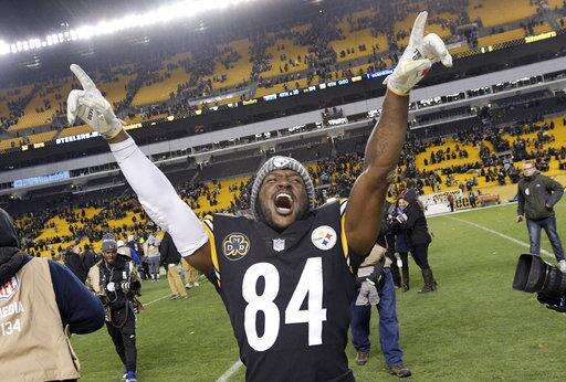 FILE - In this Dec. 11, 2017, file photo, Pittsburgh Steelers wide receiver Antonio Brown (84) celebrates a 39-38 win over the Baltimore Ravens in an NFL football game in Pittsburgh. In voting announced Friday, Jan. 5, 2018, Antonio Brown is one of four repeaters from last season on The Associated Press 2017 NFL All-Pro Team, and the only unanimous choice. (AP Photo/Don Wright) The Associated Press