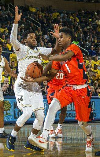Illinois was back ahead 34-31 at halftime, but while the Wolverines took better care of the ball in the second half, turnovers remained a problem for the Illini (10-7, 0-4). Michigan had 12 turnovers in the first half to nine for Illinois. In the second half, the Wolverines only had three, and the Illini had eight.