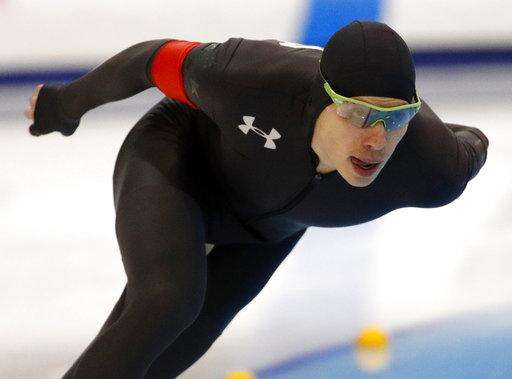 Brian Hansen competes in the men's 1,500 meters during the U.S. Olympic long track speedskating trials, Saturday, Jan. 6, 2018, in Milwaukee. (AP Photo/John Locher) The Associated Press