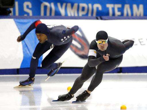 Shani Davis competes in the men's 1,500 meters during the U.S. Olympic long track speedskating trials, Saturday, Jan. 6, 2018, in Milwaukee. (AP Photo/John Locher) The Associated Press