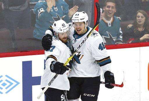 San Jose regained its three-goal lead on Hertl's second of the night when Anderson struggled to handle a bouncing puck on a wraparound and watched it bounce in through his legs.