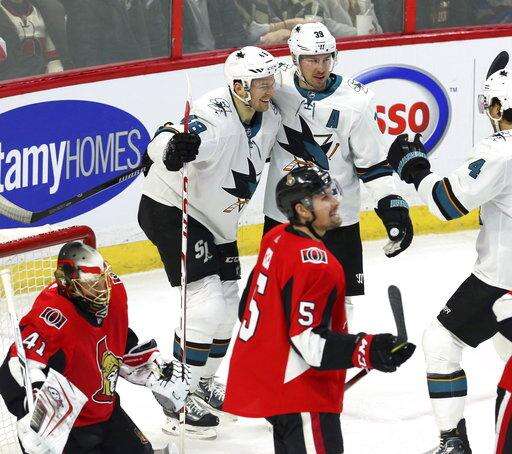 NOTES: Ottawa's Nate Thompson left early in the first with a lower-body injury and did not return. ... Ottawa C Zack Smith returned to the lineup after missing the last five games with a shoulder injury. D Fredrik Claesson was a healthy scratch. ... Sharks RW Joel Ward was a healthy scratch to give the veteran the night off.
