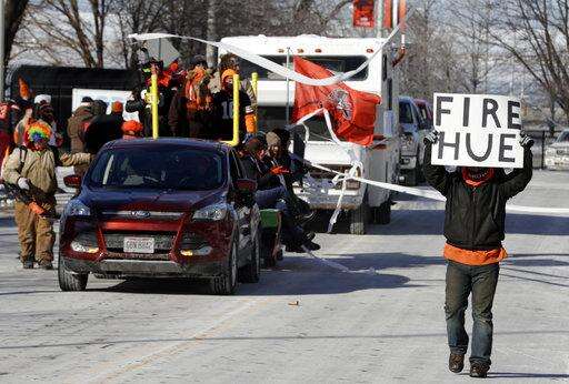 Cleveland Browns fans ride in the "Perfect Season" parade, Saturday, Jan. 6, 2018, in Cleveland. The Browns became the second team in NFL history to lose 16 games in a season. In joining the 2008 Detroit Lions in a shameful loser's club, the Browns have found a new low in what has been nearly two decades of disgrace since returning as an expansion franchise in 1999. (AP Photo/Tony Dejak) The Associated Press