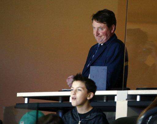 Wayne Gretzky, vice-chairman of Oilers Entertainment Group, watches the Edmonton Oilers play the Dallas Stars during the second period of an NHL hockey game in Dallas, Saturday, Jan. 6, 2018. (AP Photo/Michael Ainsworth) The Associated Press