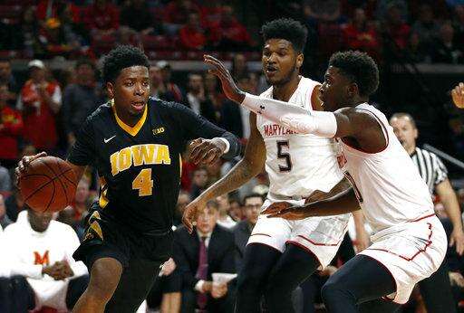 COLLEGE PARK, Md. (AP) - Long before Maryland proved it had far too much depth for Iowa, Hawkeyes coach Fran McCaffery was slapped with a pair of technical fouls and banished from the court.