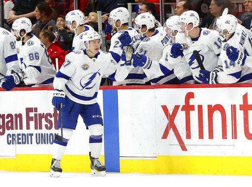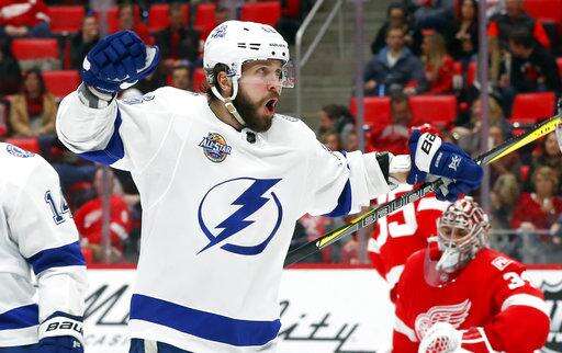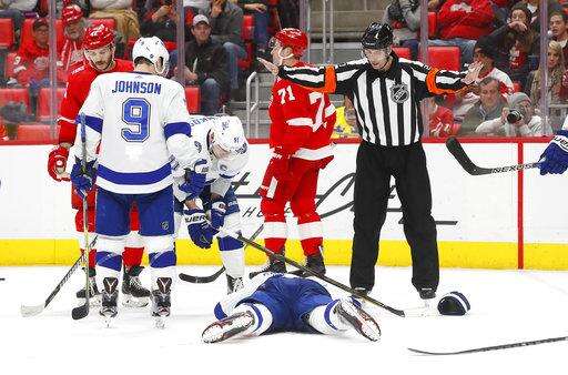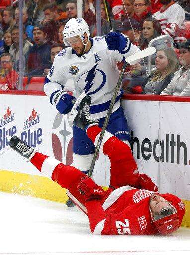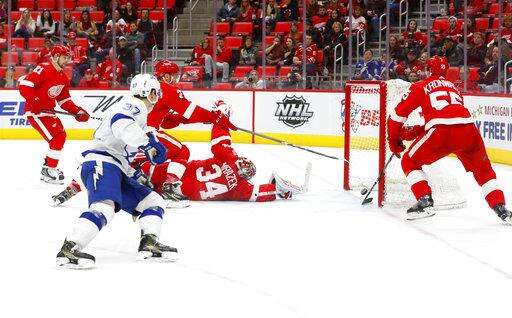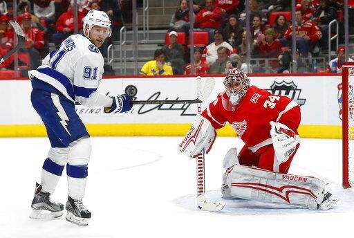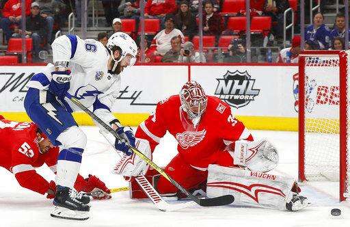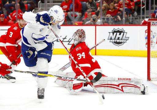 NOTES: The crowd roared when Lightning general manager Steve Yzerman, a former Red Wing star, was shown on the videoboards in the third period. ... The Red Wings were 0 for 4 on the power play, including a pair of brief two-man advantages. ... Gourde had a Gordie Howe hat trick with two goals, assist and the first fight of his NHL career in the same city where the late Hall of Famer played most of his career. "It's pretty funny," Gourde said. "I wasn't going into the game thinking I was going to get into a fight." ... The Lightning signed the 33-year-old Girardi on July 1 after the New York Rangers bought out the final three years his contract, clearing just under $2.9 million in salary-cap space this season and almost $1.9 million the two following years.