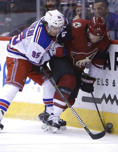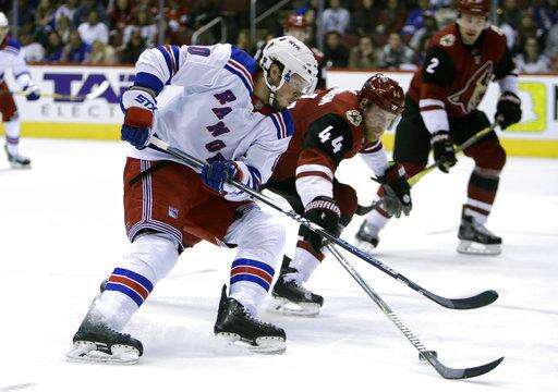 The Rangers got close to taking the lead early in the third amid a flurry of activity in front of the net with Raanta out, but the puck bounced away and was cleared. The Coyotes had two shots in succession on Lundqvist a few minutes later, but he stopped Duclair's try and the rebound by Brad Richardson.