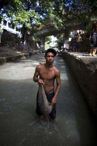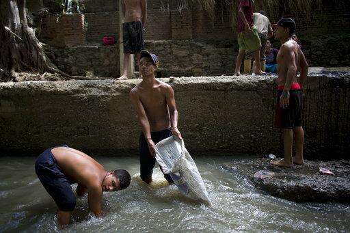 CARACAS, Venezuela (AP) - Angel Villanueva waded into the dirty brown water of the Guaire River, the putrid channel snaking through Venezuela's capital, where he hoped to scavenge for a bit of treasure.