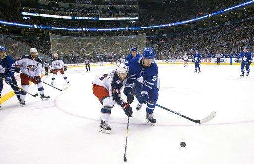 Nick Foligno and Pierre-Luc Dubois scored in the third for Columbus. Foligno scored after goalie Frederik Andersen lost a bouncing puck before it found its way behind him, then Dubois tied it with 2:47 left, snapping a wrist shot blocker side on Andersen from the slot.