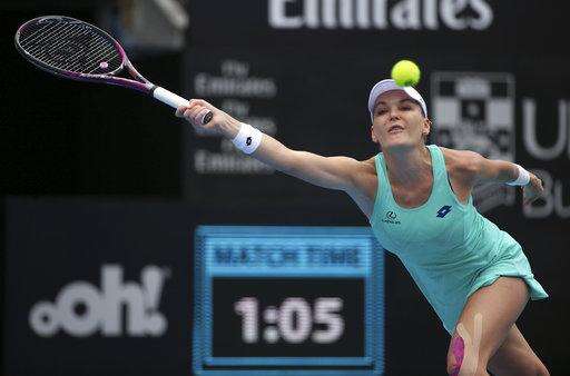 Agnieszka Radwanska of Poland reaches to hit a forehand to Johanna Konta of Britain during their women's singles match at the Sydney International tennis tournament in Sydney, Tuesday, Jan. 9, 2018. (AP Photo/Rick Rycroft) The Associated Press