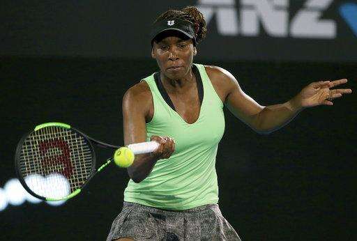 Venus Williams of the U.S. plays a forehand to Germany's Angelique Kerber in their women's singles match at the Sydney International tennis tournament in Sydney, Tuesday, Jan. 9, 2018. (AP Photo/Rick Rycroft) The Associated Press
