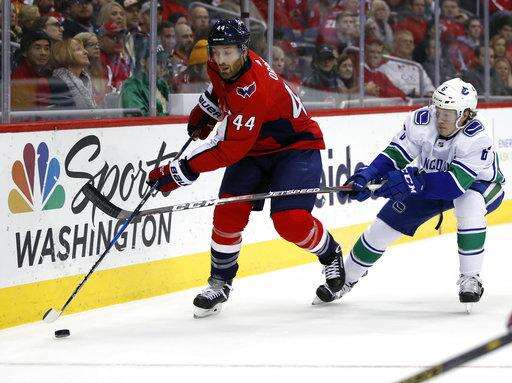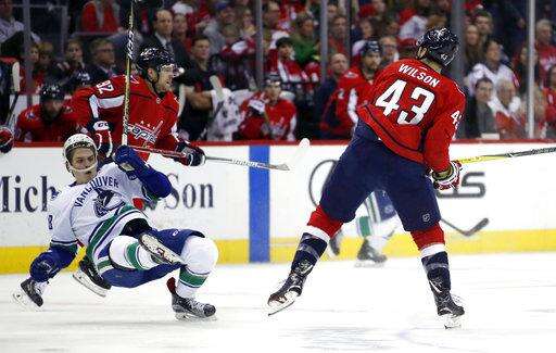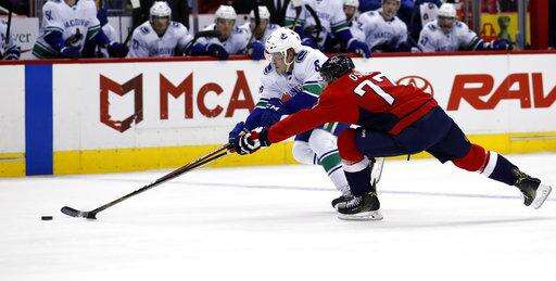 NOTES: Linesman Greg Devorski left with an illness, and the game finished with one linesman and two referees. ... Capitals F Chandler Stephenson returned to the lineup, replacing Alex Chiasson. ... Canucks D Derrick Pouliot was a healthy scratch for the first time this season. Coach Travis Green said Pouliot's game had slipped recently.