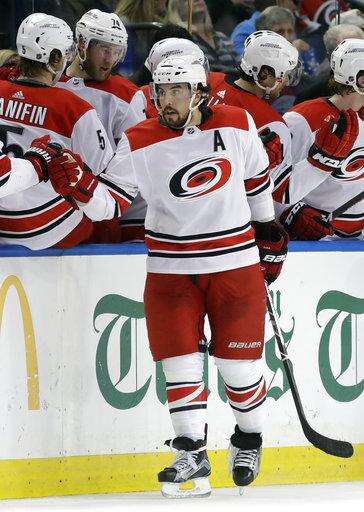 Aho was in the lineup three days after leaving Saturday's 7-1 loss at Boston following a scary looking leg injury.