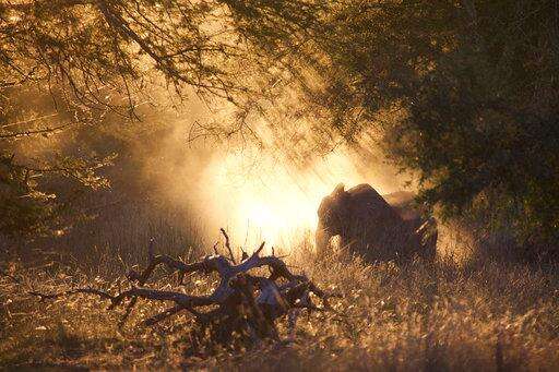 In this 2016 photo provided by Robert Pringle, elephants feed at sunset in Gorongosa National Park, Mozambique. Although some animals are killed in the crossfire or by mines, war primarily changes social and economic conditions in a way that make it tough on animals, said study co-author Pringle, an ecologist at Princeton University. Gorongosa's elephants and other wildlife were devastated by civil war in the 1980s and 90s, but have recovered dramatically over the past decade thanks to a pioneering effort by the Mozambican government to enlist conservationists, scientists, and local communities in ecological restoration. (Robert Pringle via AP) The Associated Press
