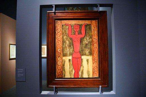 In this photo taken on March 15, 2017, a view of the painting ' Cariatide Rossa ' (Red Caryatid), attributed in a exhibit at the Ducal Palace in Genoa, Italy, to the Italian painter Amedeo Modigliani. Consumer advocates are demanding refunds after an expert ruled that a Genoa exhibit was full of Modigliani fakes. The Italian news agency ANSA reported Tuesday that the expert, appointed by a Genoa court during a prosecutorâs probe, concluded that at least 20 of 21 paintings displayed in 2017 during the Ducal Palace exhibit were clearly fakes. (Luca Zennaro/ANSA via AP)