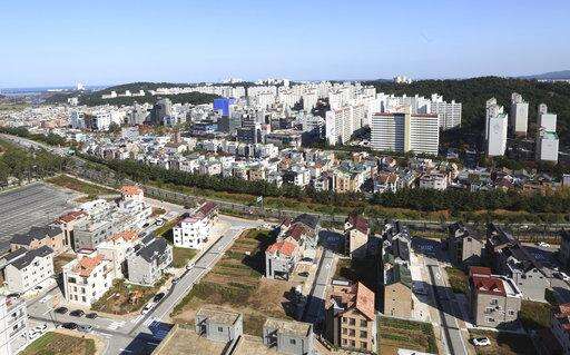 FILE - This Oct. 30, 2017, file photo shows overview of the Gangneung City, South Korea. The Winter Olympics are actually being held in three areas: Pyeongchang, known for mountains and winter sports; Jeongseon, a blue-collar former mining region; and Gangneung, the biggest of the three Olympic towns by far and a bustling port and vacation area along the Sea of Japan, known here as the East Sea.(AP Photo/Ahn Young-joon, File)