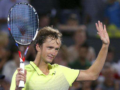 Daniil Medvedev of Russia celebrates his win over Alex De Minaur of Australia in their men's final singles match at the Sydney International tennis tournament in Sydney, Saturday, Jan. 13, 2018. (AP Photo/Rick Rycroft) The Associated Press