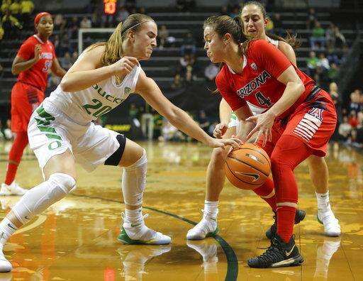 Oregon has five players scoring in double figures this season, but only six Ducks scored against Arizona. Freshman starter Sabou Sabally went scoreless in 11 minutes after early foul trouble. No bench player scored for Arizona.