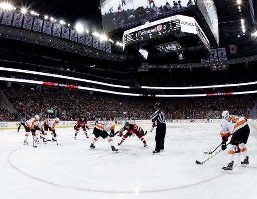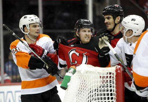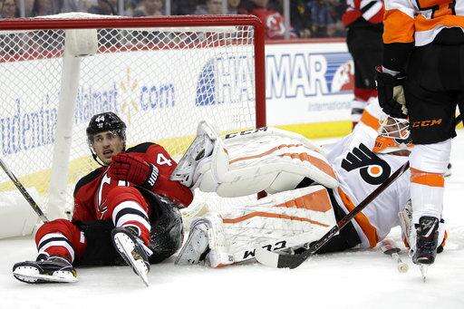 NOTES: Flyers D Shayne Gostisbehere was scratched because of an illness. ... Flyers D Radko Gudas played in his 300th game. ... Giroux moved past Mark Recchi for eighth place on the Flyers' career scoring list with 629 points in 11 seasons. ... Taylor Hall's two assists for New Jersey gives him eight points (three goals, five assists) in the last four games.