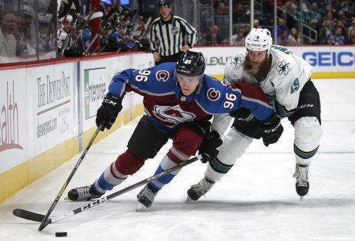 NOTES: The Sharks are in a stretch during which they play 14 of 18 games on the road. ... This was the first of three meetings between San Jose and Colorado. ... Avalanche C Tyson Jost (lower body) was out of the lineup, while LW J.T. Compher (upper body) returned after missing six games. "They're kind of trading off injuries," coach Jared Bednar said. ... F Sven Andrighetto (lower body) was placed on injured reserve. ... Varlamov has resumed skating, Bednar said. ... Colorado has scored 92 goals on home ice, the most in the league.