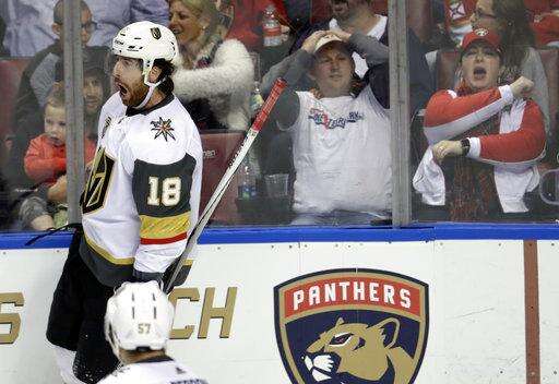 NOTES: Neal has scored 20 or more goals for 10 consecutive seasons. ... Golden Knights forwards Jonathan Marchessault and Reilly Smith each played for the Panthers last season. ... The Panthers honored original owner H. Wayne Huizenga by retiring jersey No. 37 in a pregame ceremony on Friday night. Huizenga's lucky number is 37 and was also the year he was born. ... Panthers D Keith Yandle played his 677th straight game, the longest active streak in the NHL. Yandle has not missed a game since March 22, 2009, when he was with the Phoenix Coyotes.