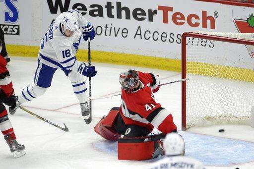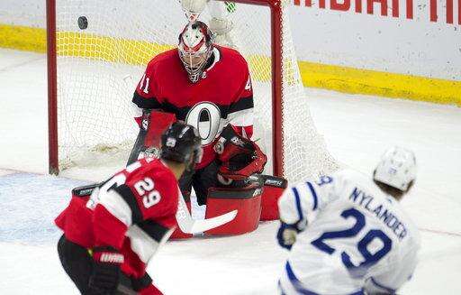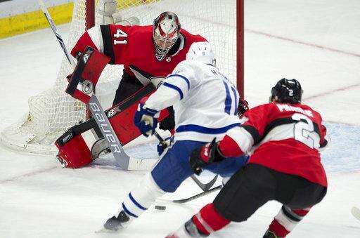 NOTES: Nate Thompson and Fredrik Claesson were scratches for the Senators. ... Dominic Moore, Josh Leivo and Morgan Rielly were scratches for the Maple Leafs. ... The Senators recalled forward Colin White from Belleville.