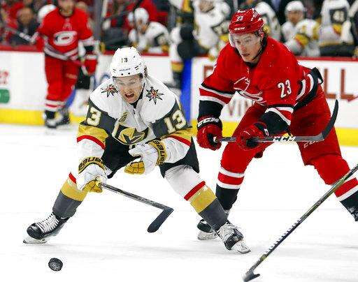 NOTES: Carolina played its second consecutive game without F Sebastian Aho, the team's leader in goals and points. Aho has not played since suffering a concussion and an unspecified lower-body injury Jan. 14 against Calgary. ... The Golden Knights are 20-1 when scoring first, and Carolina is 3-13-5 when trailing 1-0. ... Miller's goal broke an 0-for-19 skid on the power play for Vegas, which last had an extra-man goal Jan. 2 against Nashville. ... Carolina's Justin Faulk took two penalties in a span of nine minutes in the first and second periods. ... Darling entered the game having been successful against Pacific Division teams, going 10-4-7 with a 1.89 goals against average.