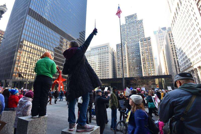 The official front of the Women's March Chicago reaches Federal Plaza following a two-hour rally in Grant Park in Chicago Saturday.