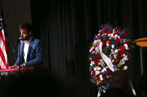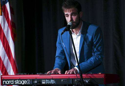 Tal Ramon, son of space shuttle Columbia astronaut Ilan Ramon, plays for the crowd at the Astronauts Memorial Foundation, Center for Space Exploration Thursday, Jan 25, 2018, during Kennedy Space Center's annual day of remembrance in Fla. The annual event honors those who perished in the space program. (Craig Bailey /Florida Today via AP) The Associated Press