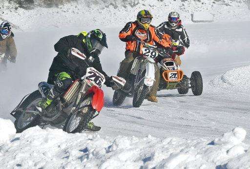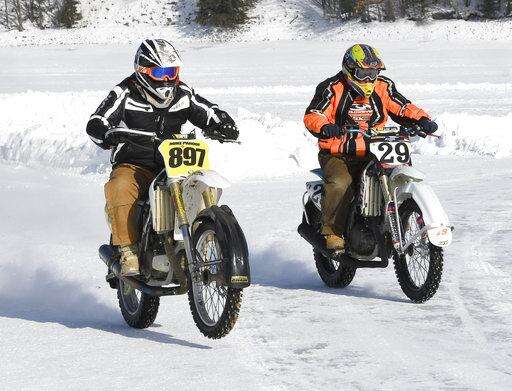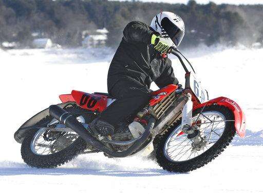 NORTHVILLE, N.Y. (AP) - Call them freezy riders. These motorcycle racers seem to defy physics by buzzing around slick tracks plowed out atop frozen lakes and rivers each winter.