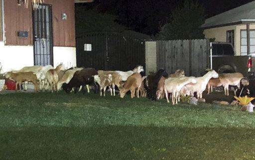 Police say a donkey led more than a dozen sheep and goats on a stroll through a suburban West Covina neighborhood east of Los Angeles.