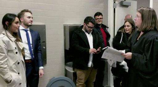 FREEHOLD, N.J. (AP) - A New Jersey couple recently changed their wedding venue from a judge's chambers to a courthouse bathroom after a relative had an asthma attack.