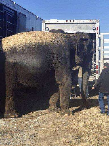 The elephants were transferred to another trailer and moved to a nearby veterinarian's property before another vehicle arrived to take them to Iowa.