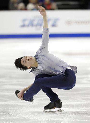 FILe - In this Jan. 4, 2018, file photo, Vincent Zhou performs during the men's short program at the U.S. Figure Skating Championships in San Jose, Calif. Seventeen-year-old teammate Vincent Zhou is also a quad machine, and like Nathan Chen he is improving in other areas. (AP Photo/Marcio Jose Sanchez, File) The Associated Press