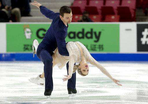 FILE - In this Jan. 7, 2018, file photo, Madison Hubbell, left, and Zachary Donohue perform during the free dance event at the U.S. Figure Skating Championships in San Jose, Calif. Madison Hubbell and Zach Donohue broke out of their habit as "bronzemaids" by winning the U.S. championship, and their free dance not only is sultry, but complex and enchanting. (AP Photo/Ben Margot, File) The Associated Press