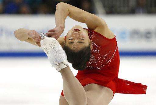 FILE - In this Jan. 5, 2018, file photo, Mirai Nagasu performs during the women's free skate event at the U.S. Figure Skating Championships in San Jose, Calif. America's best chance to reach the women's podium rests with 24-year-old Mirai Nagasu. She was fourth at the Vancouver Games eight years ago, then slumped, before rallying to finish third at the 2014 nationals, only to be bumped for Ashley Wagner by the U.S. Figure Skating committee. (AP Photo/Tony Avelar, File) The Associated Press