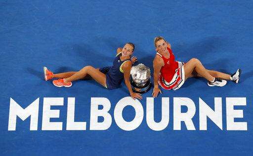 Babos and Mladenovic embraced midcourt after beating Russian pair Ekaterina Makarova and Elena Vesnina 6-4 6-3 in Friday's final at Rod Laver Arena.