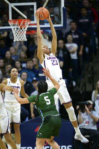 Kia Nurse scored 14 for the Huskies (9-0 American Athletic Conference) and tied a career high with seven rebounds. Napheesa Collier hit all six of her shots for 13 points. Gabby Williams added 13 points and nine assists.