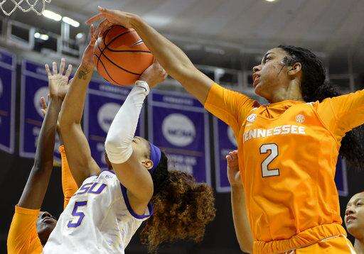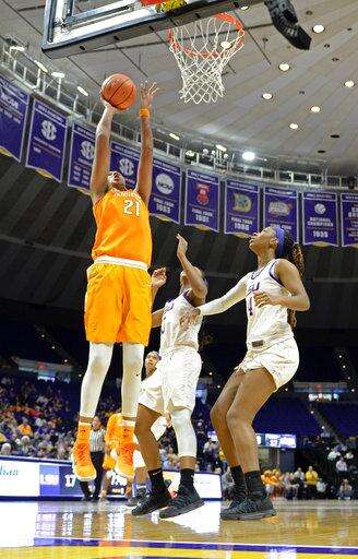Chloe Jackson scored 17 of her 21 points in the second half and finished with nine rebounds and four assists. She hit three jump shots in an 8-0 spurt in the fourth quarter to extend LSU's lead to 53-43 with 6:55 remaining. Tennessee quickly cut it to a five-point deficit but got no closer the rest of the way.