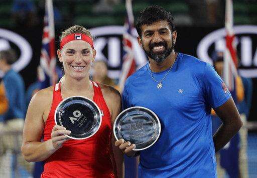 The mixed doubles final will open play Sunday at Rod Laver Arena. Rohan Bopanna of India and Hungary's Timea Babos will play Gabriela Dabrowski of Canada and Croatia's Mate Pavic.