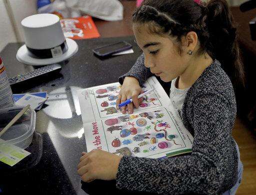 In this Jan. 23, 2018 photo, Yandeliz Neris studies a workbook inside her family's hotel room at the Rodeway Inn in Tampa, Florida, where she's living with her family after Hurricane Maria destroyed their home in Puerto Rico. FEMA says there are more than 10,000 people receiving hotel assistance. The agency has set March 20 as a deadline for the program to end overall but all cases are reviewed for eligibility every 30 days. (AP Photo/Chris O'Meara) The Associated Press