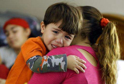 In this Jan. 23, 2018 photo, Leslie Rivera comforts her son Aaron inside their hotel room at the Rodeway Inn in Tampa, Florida, where they're living after Hurricane Maria destroyed their home in Puerto Rico. The move north spared them from the misery of the storm's aftermath on the island, but the transition has often turned out to be difficult, disruptive and expensive as Puerto Ricans try to find housing, jobs, schools and even furniture and clothes to start fresh in the mainland. (AP Photo/Chris O'Meara) The Associated Press