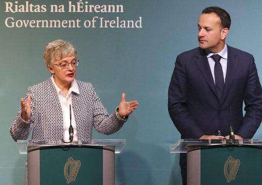 Ireland's Minister for Children and Youth Affairs Katherine Zapponethe and Prime Minister Leo Varadkar media on the government's plans for a referendum on Ireland's restrictive abortion laws, following a specially convened cabinet meeting at Government Buildings in Dublin Monday Jan. 29, 2018. Ireland’s Health Minister Simon Harris said Tuesday abortion is a reality for Irish women regardless of whether the country repeals a constitutional ban on most terminations at a planned referendum in May. (Niall Carson/PA via AP) The Associated Press