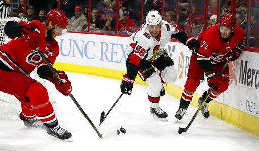 NOTES: Aho had no apparent issues in his return, playing 19:03. ... Ottawa D Erik Karlsson reached 300 career penalty minutes when he was called for hooking in the first period. ... The Senators scratched D Erik Burgdoerfer and C Filip Chlapik. ... The Hurricanes scratched D Klas Dahlbeck, F Josh Jooris and F Phillip Di Giuseppe.