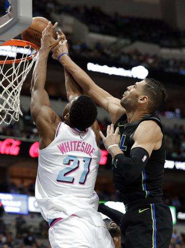 DALLAS (AP) - Hassan Whiteside had an impressive response after a long conversation with Eric Spoelstra, and the Miami Heat completed another season sweep of the Dallas Mavericks.